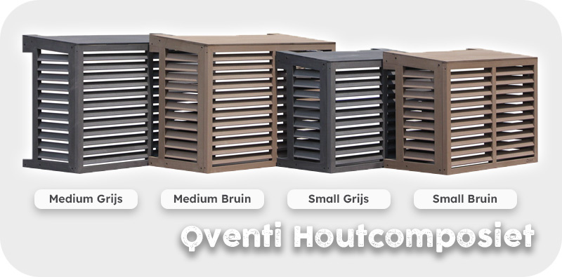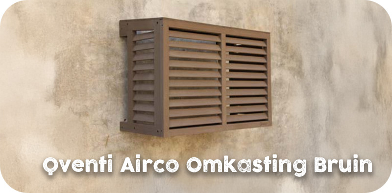 De Qventi airco-omkastingen van houtcomposiet zijn leverbaar in de kleuren bruin en grijs, en beschikbaar in diverse afmetingen.